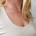 Adorn your neck with this stunning 18k gold-filled Tennis necklace. Delicate and minimalist, its classic look is sure to make a statement. Its 3mm cubic zirconia shine brightly, making this the perfect accessory for any outfit.