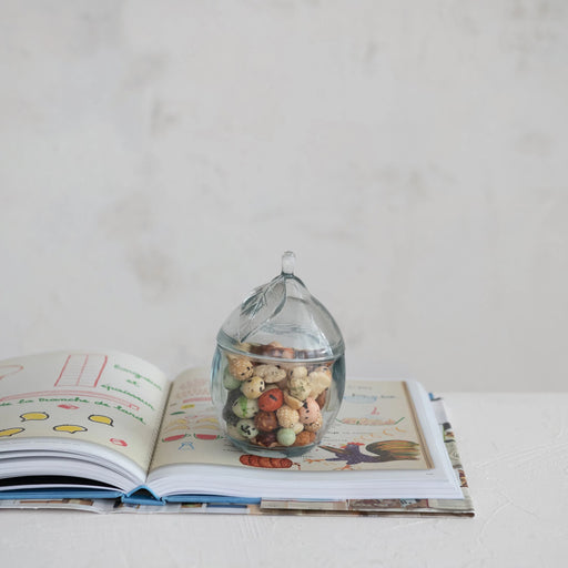3-1/2" Round x 3-1/4"H Glass Jar w/ Lid & Hand-Blown Shrimp Handle Food safe glassware