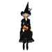 Joe Spencer's Shasta is a striking witch dressed head-to-toe in black, exuding a wickedly enchanting presence. Standing 45-inches-tall, she sports flowing white hair, and a classic black hat adorned with stylish feathers. Clutching a small pumpkin with a toothy grin, Shasta is the perfect blend of spooky elegance, making her a captivating addition to any Halloween decor.